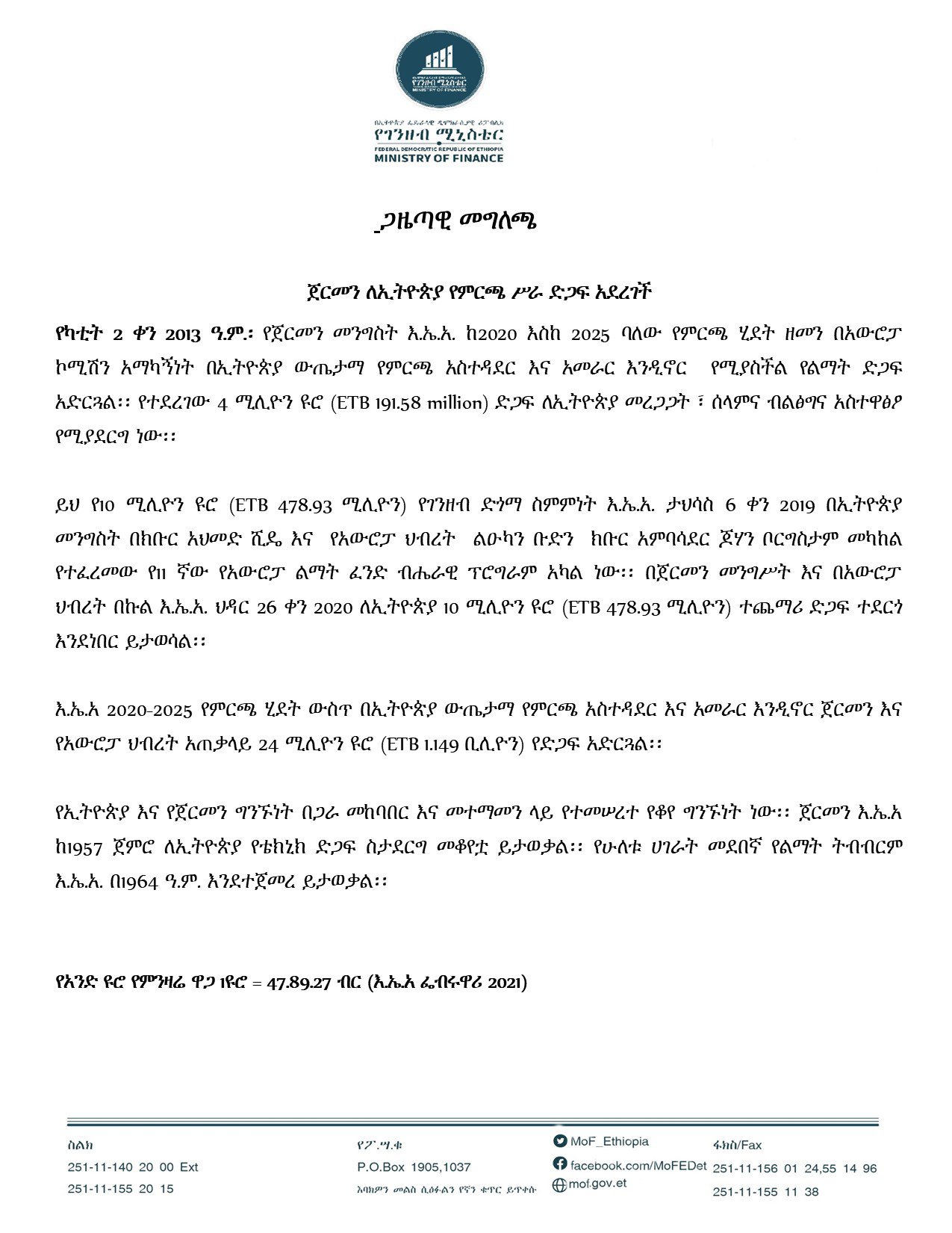 Fedral Dimocratic Republic of Ethiopia, Ministry of Finance