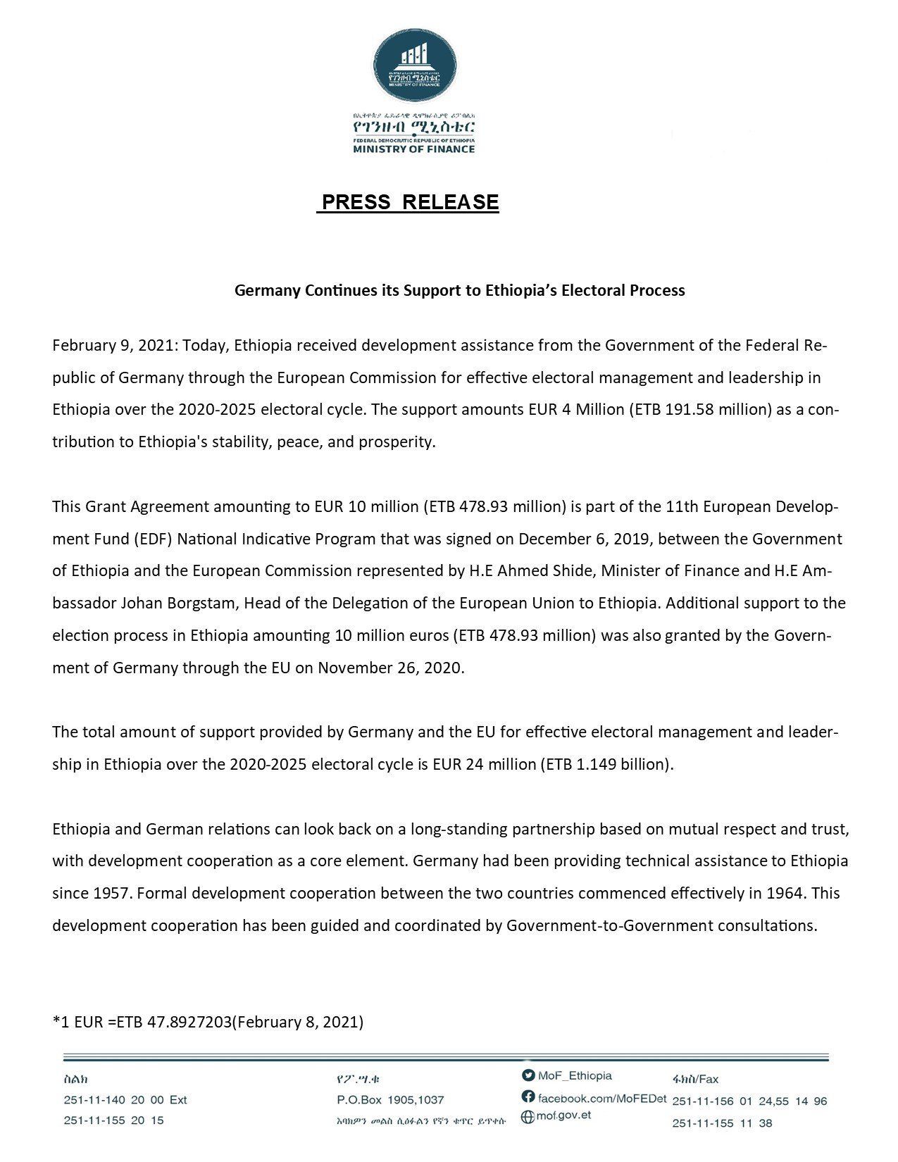 Fedral Dimocratic Republic of Ethiopia, Ministry of Finance
