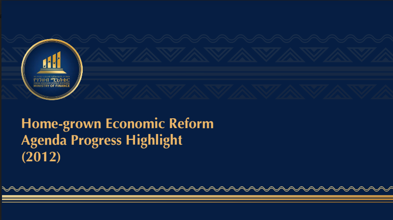 Home-grown Economic Reform Agenda Progress Highlight 2012 By Zekarias | Published: Aug. 6, 2021 View or Download PDF HGER - progress highlight - EFY 2012 Uploaded date: July 6, 2021