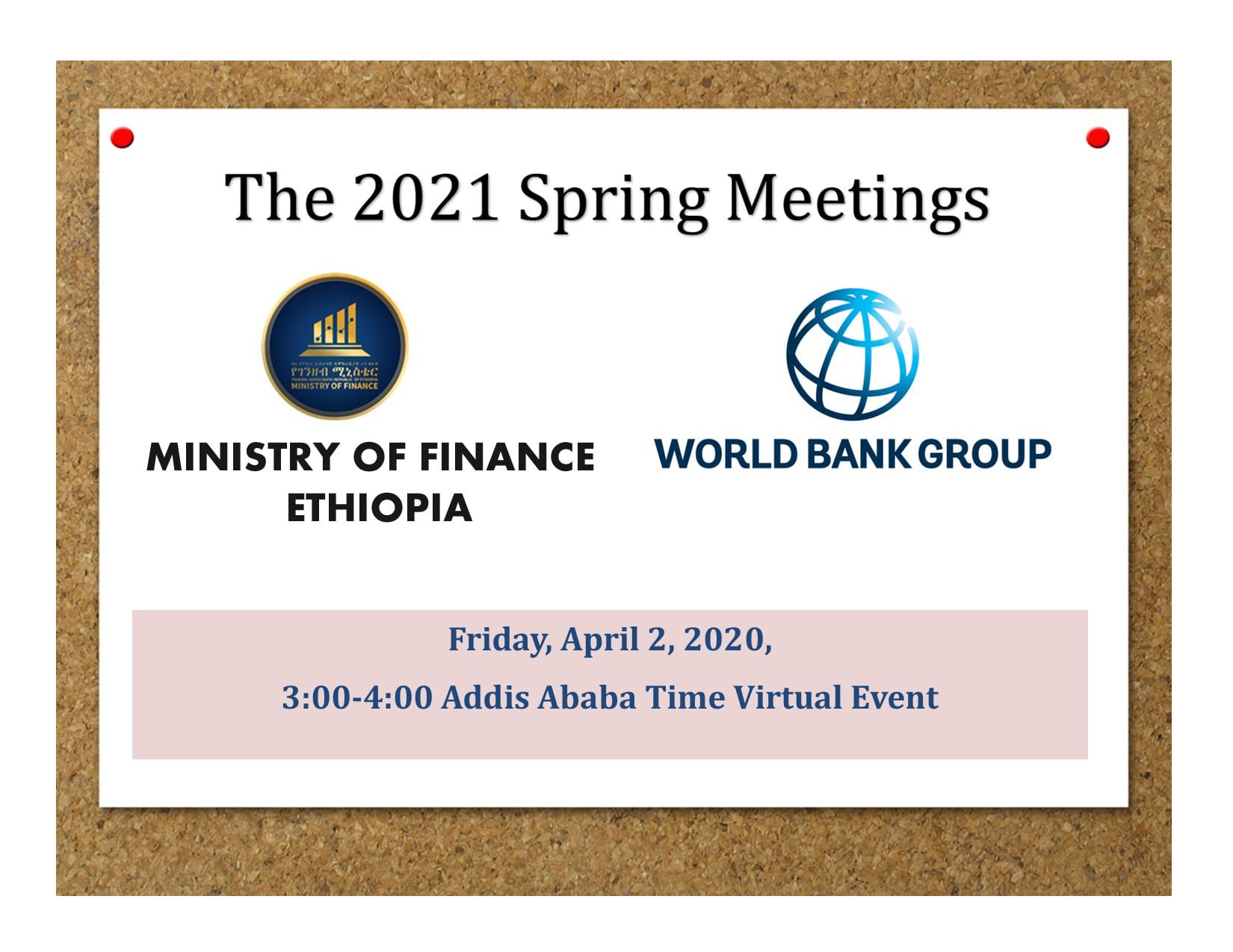 Today, Ethiopia and the World Bank Group conducted a virtual meeting which is part of the annual Spring Meetings where H.E Ahmed Shide, Minister of Finance briefed participants about the ongoing major economic reform measures undertaken by the Ethiopian government thus far.