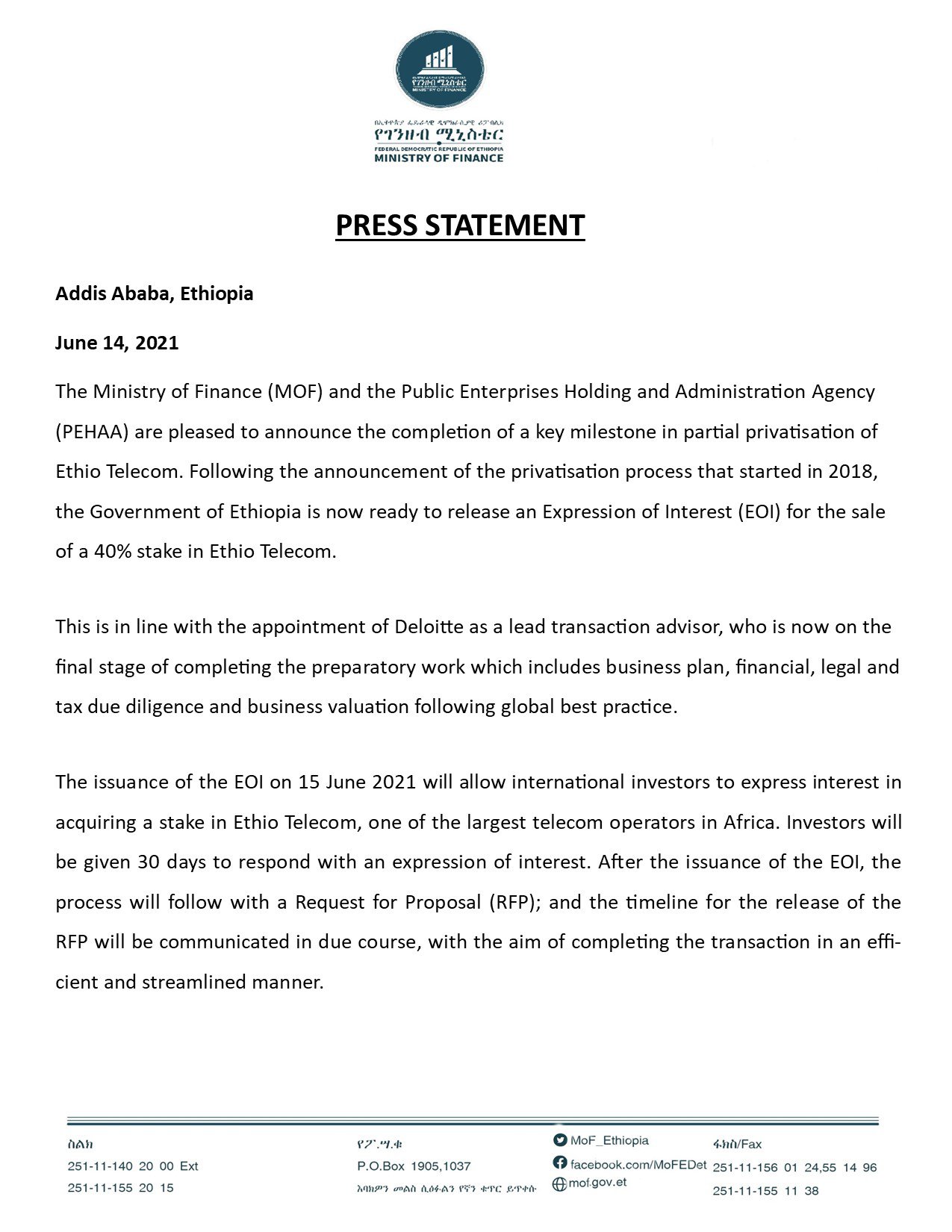 Fedral Dimocratic Republic of Ethiopia, Ministry of Finance