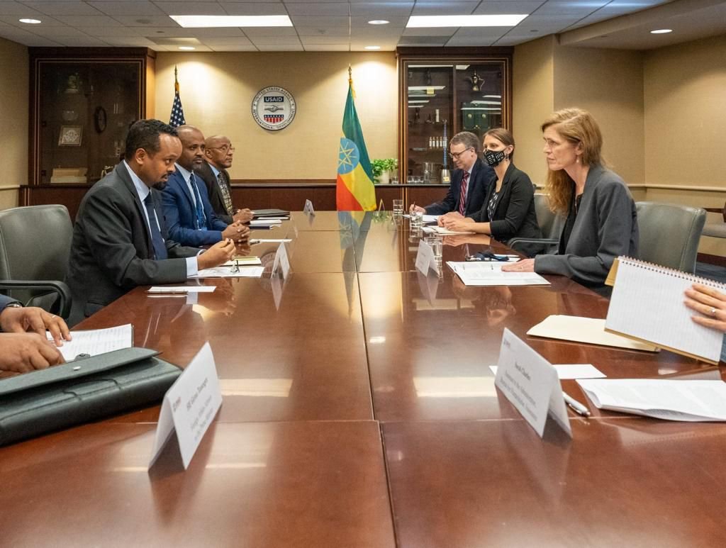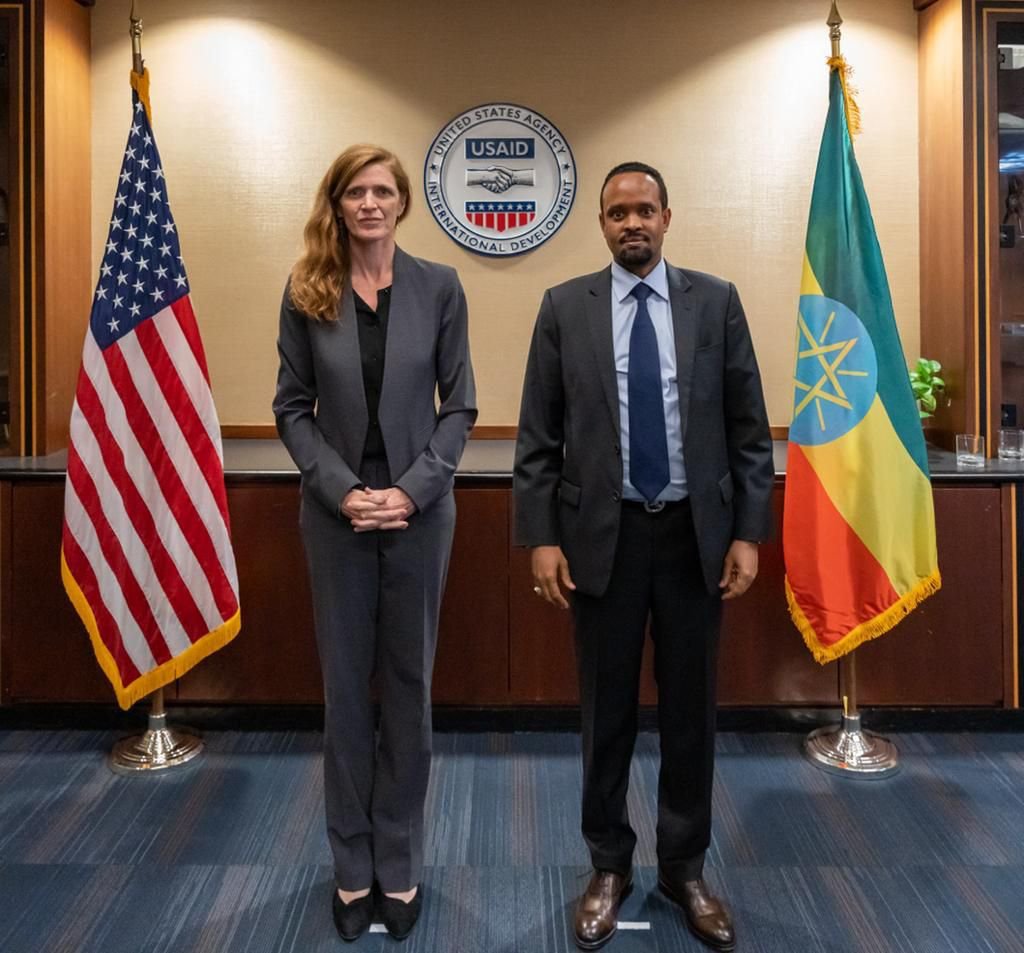The Ethiopian delegation led by the Minister of Finance H.E. Ahmed Shide held a fruitful discussion with USAID Administrator Madame Samantha Power on the development cooperation between the two countries and current political and economic development in Ethiopia.