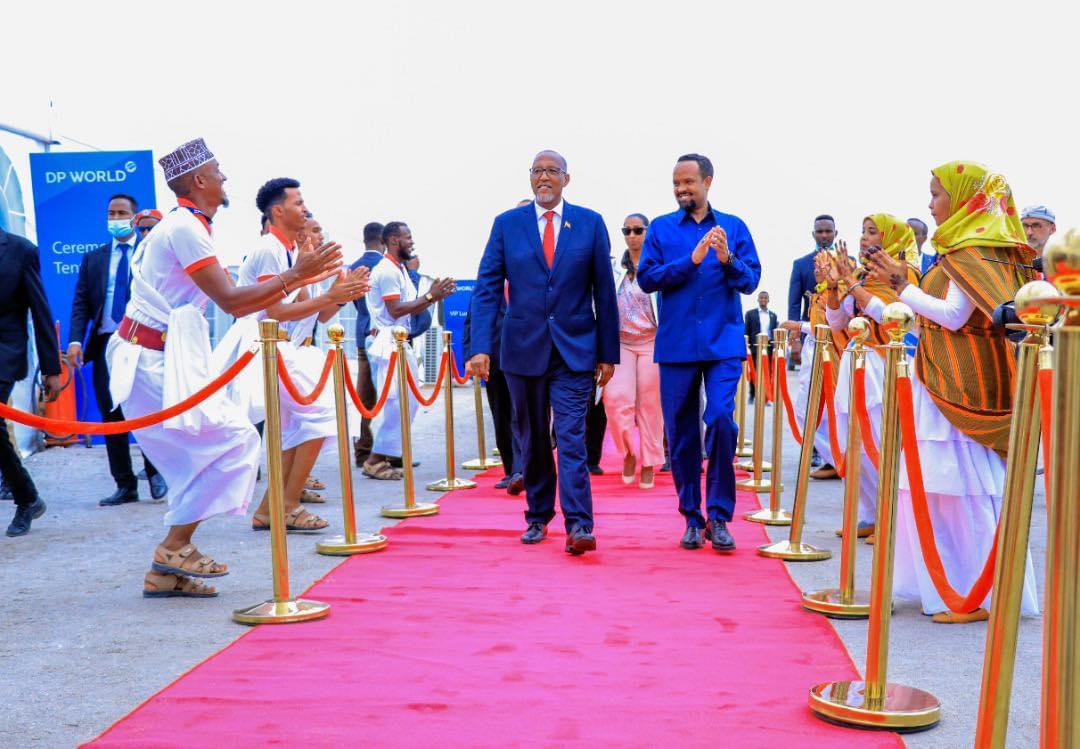 A high-level delegation from including H.E Ahmed Shide, Minister of Finance, H.E Dagmawit Moges, Minister of Transport & H.E Mustafa Mohammed, President of the Somali Regional State in Ethiopia are currently visiting the first phase of expansion & modernization of Berbera port